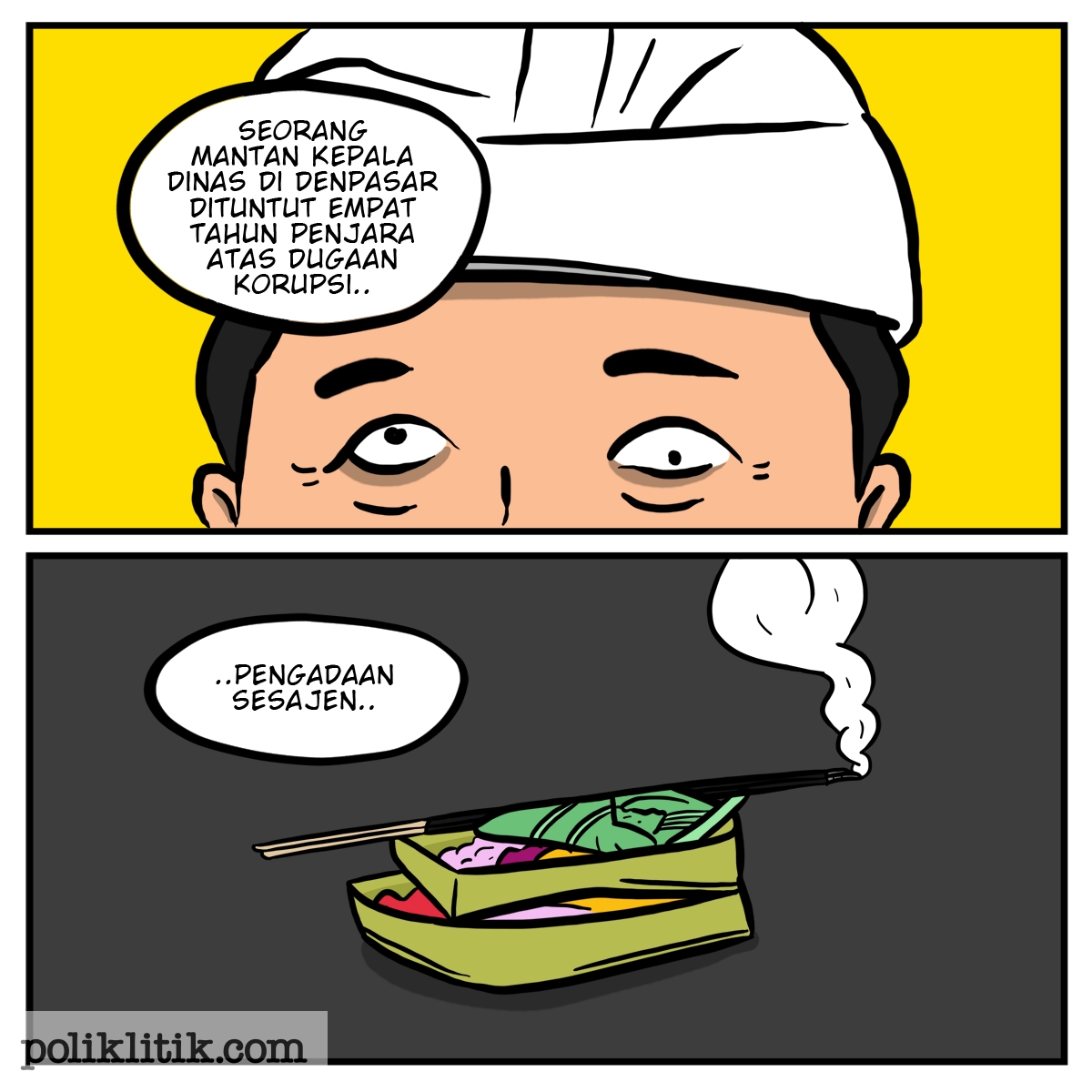 Di Indonesia, apapun bisa dikorupsi. Mulai dari kitab suci, sampai.. sesajen.
