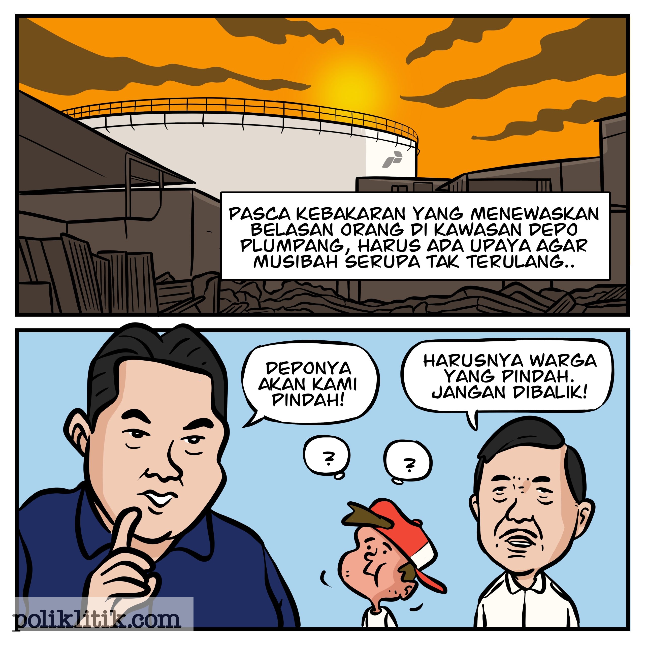 Sekarang, pascakebakaran besar beberapa waktu lalu, masa depan Depo Pertamina Plumpang dipersoalkan. Opsinya ada dua: deponya yang dipindah, atau warganya yang dipindah.